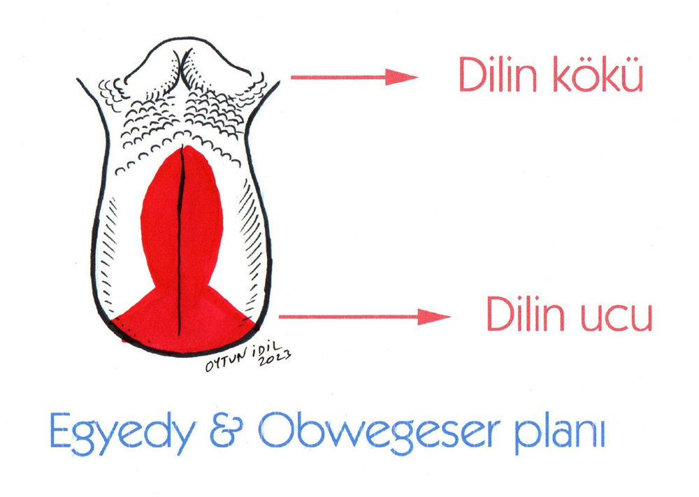 - Ameliyat planı yapılırken dilin tat alma duyularını en az etkileyecek bir plan yapılmalıdır. Biz genellikle bir çok ameliyat planından Egyedy & Obwegeser çizimini tercih ediyoruz. Bu ameliyat planı ile dil istendiği kadar kısaltılır ve daraltılır. Ayrıca dilin tat alma fonksiyonları da pek etkilenmez.